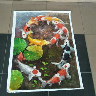 Lukisan Objek Motif Ikan Koi Dimensi 60x80 Cm Cocok Digunakan Untuk Penghias Dinding Atau Sebagai Penghias Ruangan Kamar Lukisan Hewan Hewan Lukisan